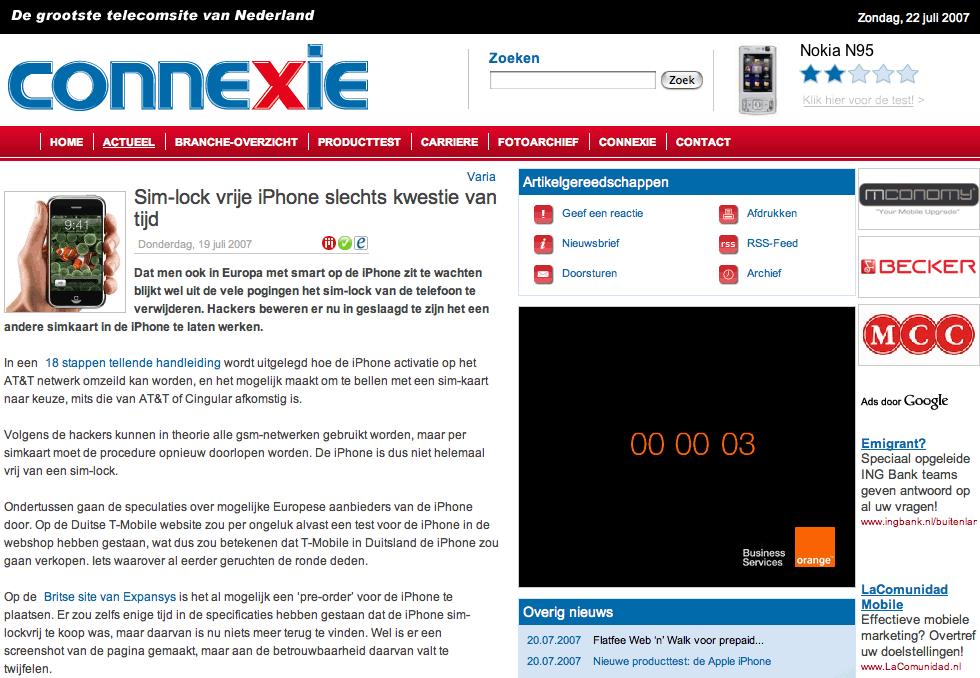 I was interviewed via phone by technology reporter Iain Mackenzie on September 3, 2007. The interviewed